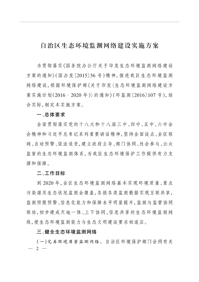 关于印发自治区生态环境监测网络建设实施方案的通知